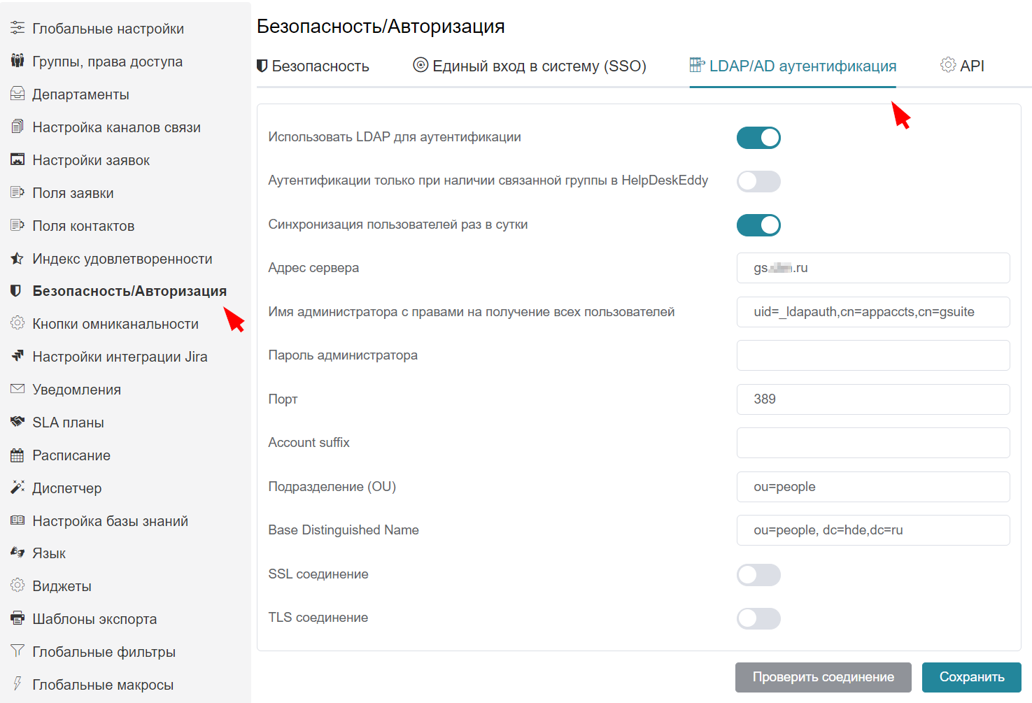 Как настроить интеграцию с LDAP/Active Directory: